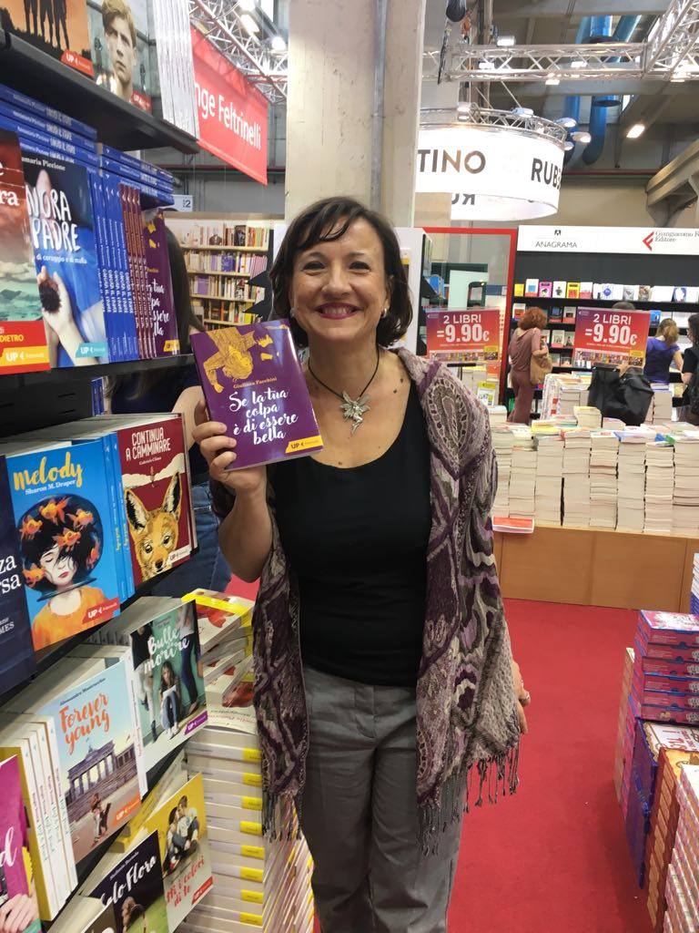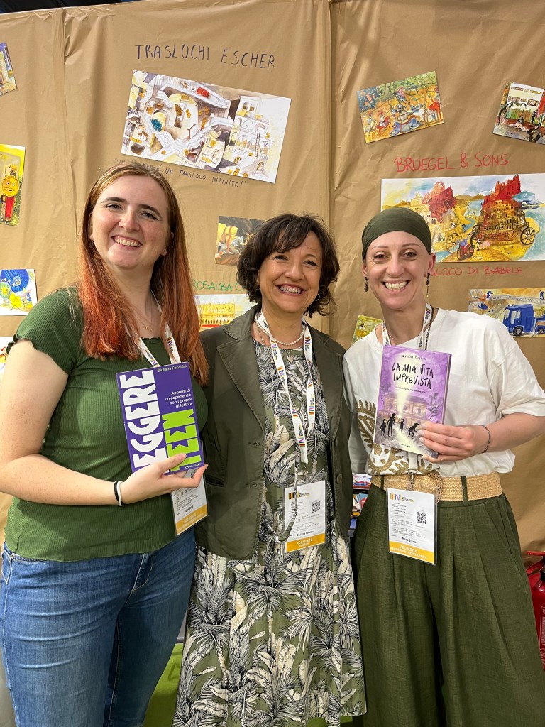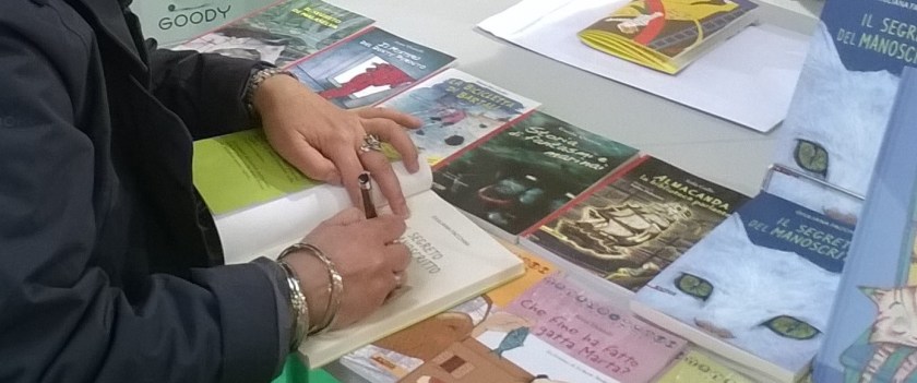 A Più Libri Più Liberi 2018 di Roma. Sopra intervista Rai Letteratura, sotto Della Passarelli di Sinnos e Mara becchetti, autrice della copertina del libro, firmacopie e incontro con giovani appassionati lettori.