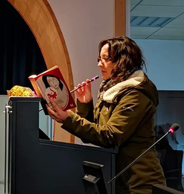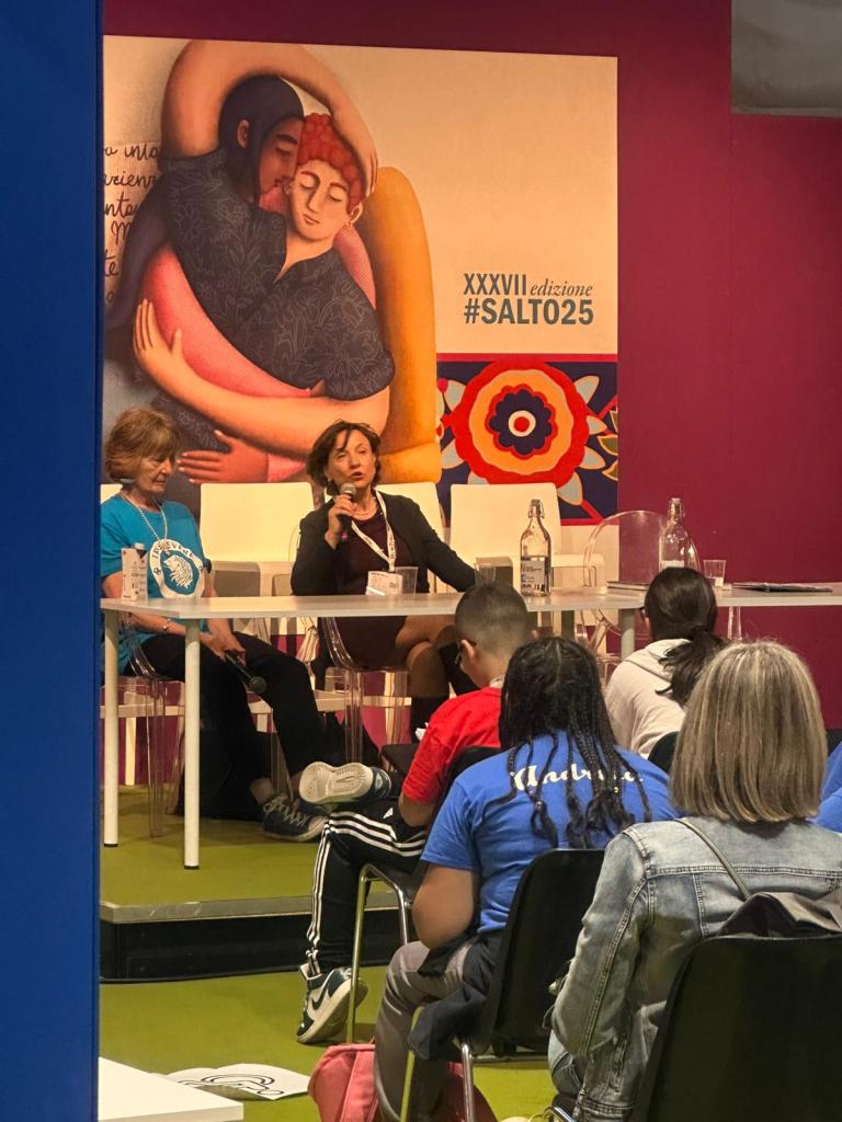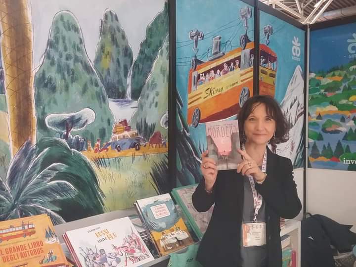 Bologna Children’s Book Fair 2022 – stand Sinnos EditriceBologna Children’s Book Fair 2022 – stand Sinnos EditriceBologna Children’s Book Fair 2022 – stand Sinnos EditriceIl viaggio di Matilda editrice si con conclude, ma quel libro non smetterò di leggerlo ad alta voce. Grazie a Donatella Caione sempre, a quelle 23 scrittrici per ragazze e ragazzi, grazie a Milena Tancredi per questa foto, che mi racconta tantissimo, scattata alla biblioteca Magna Capitana di Foggia. Mi fa pensare alla militanza che chi scrive per ragazze e ragazzi conosce e pratica; con una storia tra le mani, la giacca addosso e le scarpe basse per andare ovunque dell’Auditorium, alle scuole, all’oratorio di periferia.